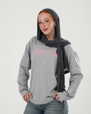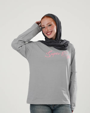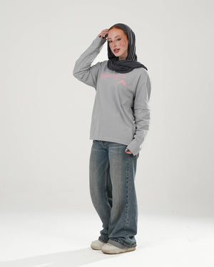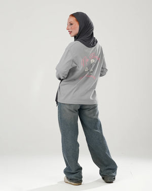 hijabi-friendly. Designed with a relaxed long fit and full sleeves — this tee is perfect for hijabi girls who want comfort with a quiet edge.