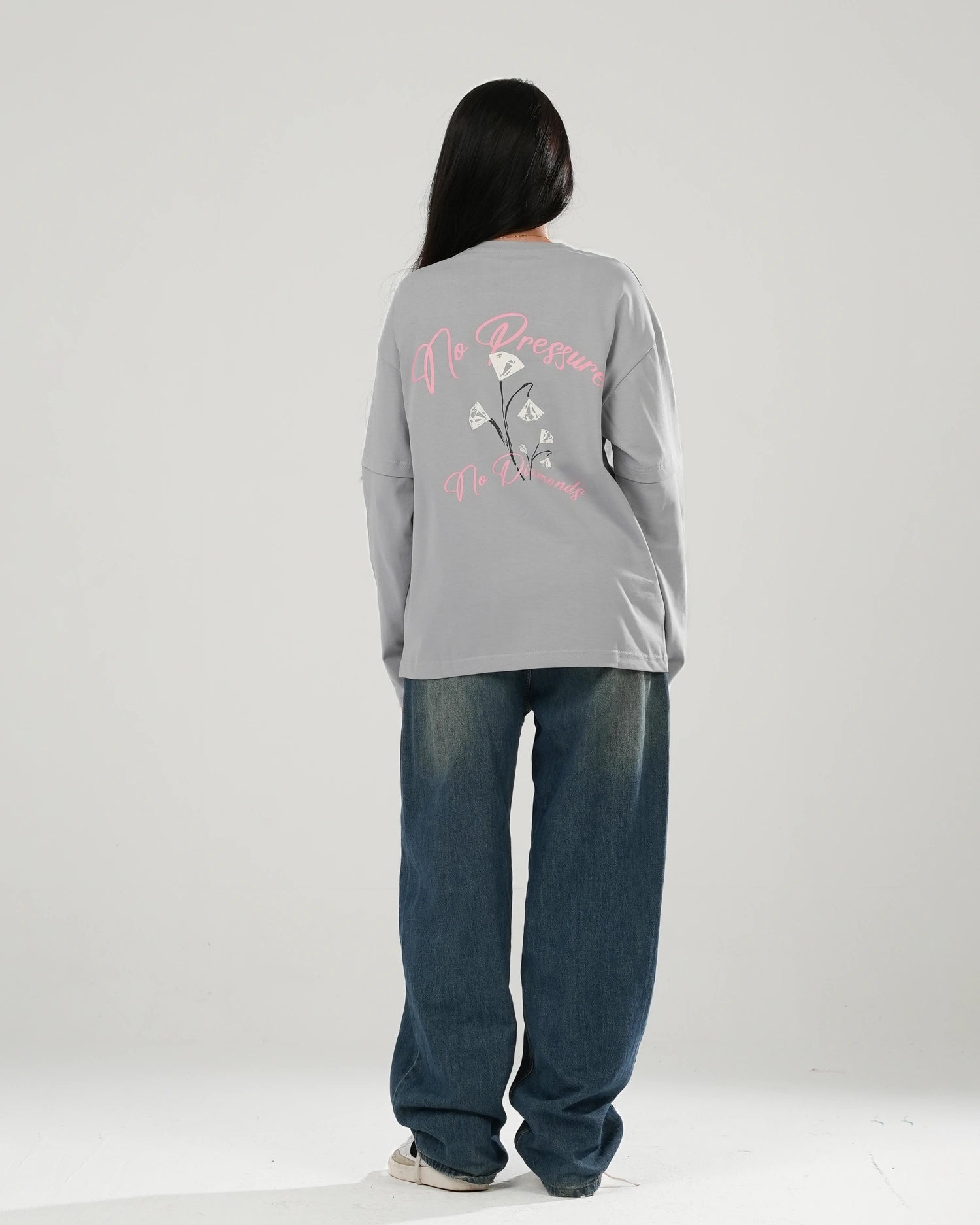 Back print: “No Pressure, No Diamonds” with floral artwork – a symbol of growth, strength, and grace under pressure
